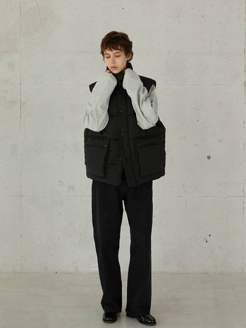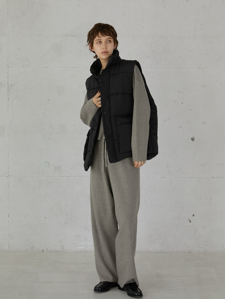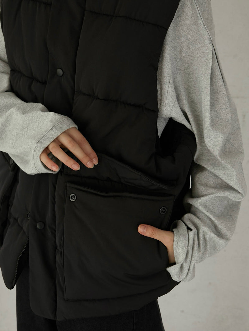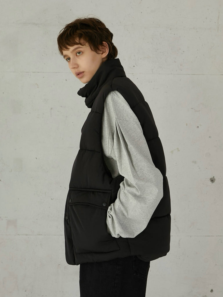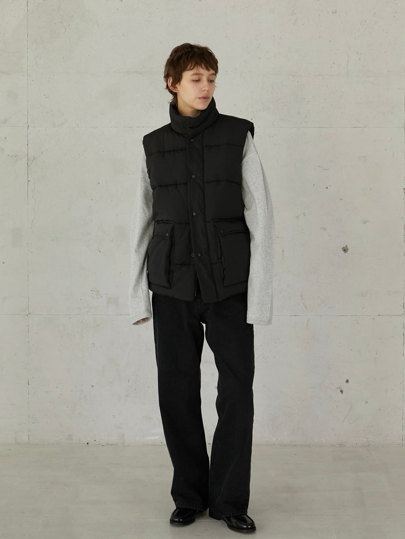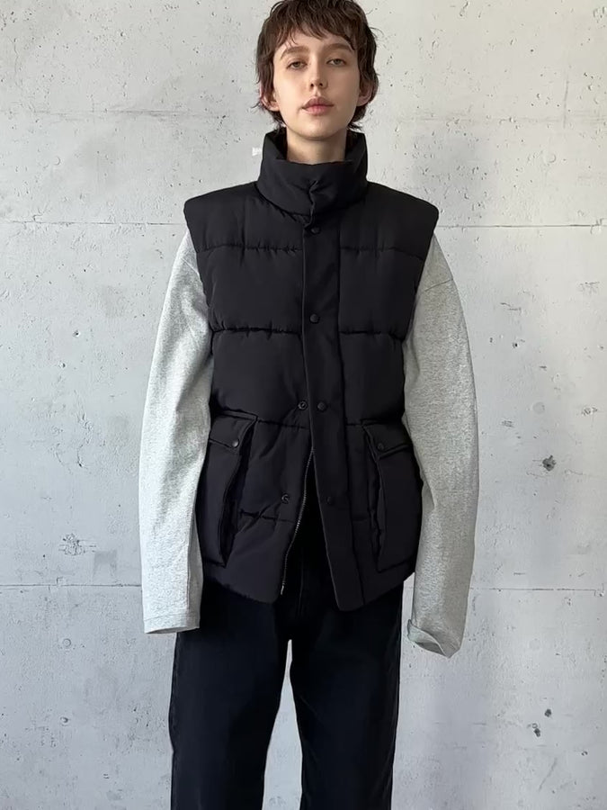 ボリュームのある中綿を搭載した、軽量かつ保温性にも優れた中綿ベスト。フロントにはフラップの上側からとサイドからのポケットの二重ポケットを。中綿入りの立体的なポケットを配置しました。