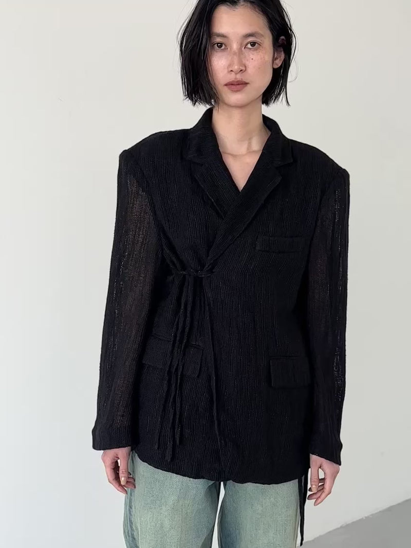 テーラードジャケットでありながらどこか力の抜けたバランスが印象的なリネン混のジャケット。空気を含むような軽やかさがあり、リネン特有のシャリ感が輪郭を際立たせ、コットンのしなやかさが全体に落ち着きを与えます。肩パットは取り外し可能なのでスタイリング次第で付けたり外したりも◎(写真10枚目が肩パットなしver)