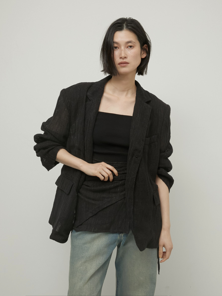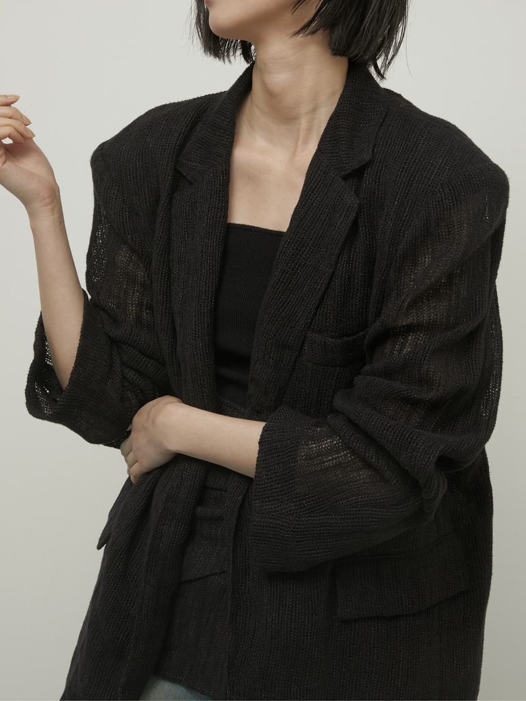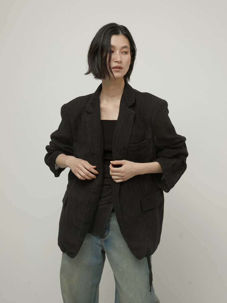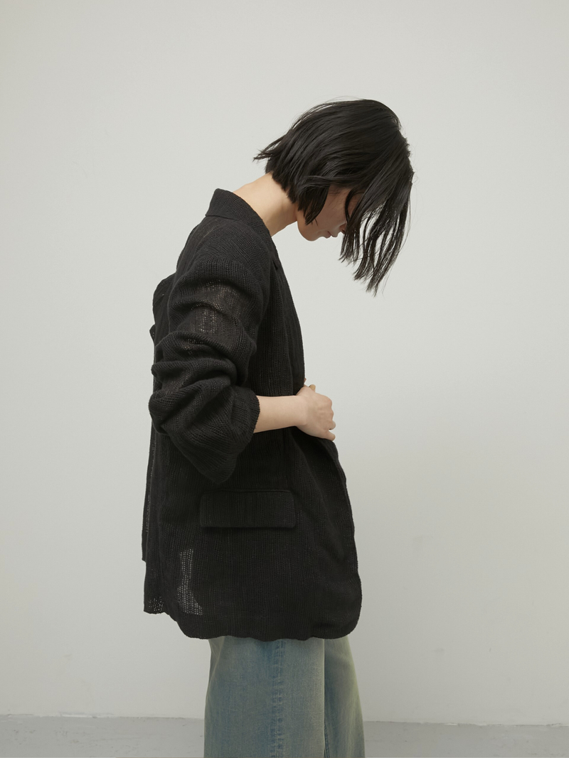テーラードジャケットでありながらどこか力の抜けたバランスが印象的なリネン混のジャケット。空気を含むような軽やかさがあり、リネン特有のシャリ感が輪郭を際立たせ、コットンのしなやかさが全体に落ち着きを与えます。肩パットは取り外し可能なのでスタイリング次第で付けたり外したりも◎