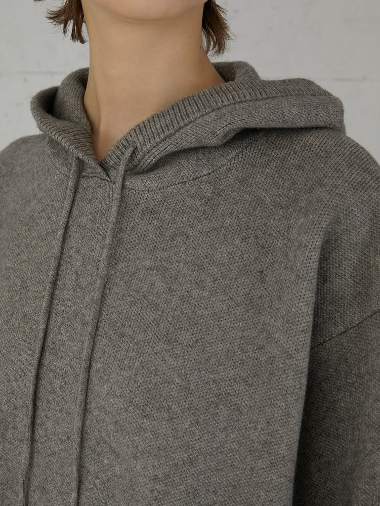 立体感のあるシルエットが魅力のニットビッグフーディ。