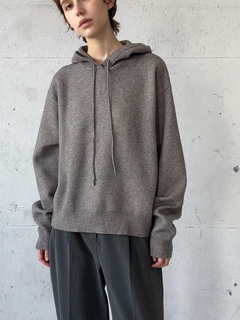 デザイン性と快適さを兼ね備えた、1枚で主役になるニットフーディです。