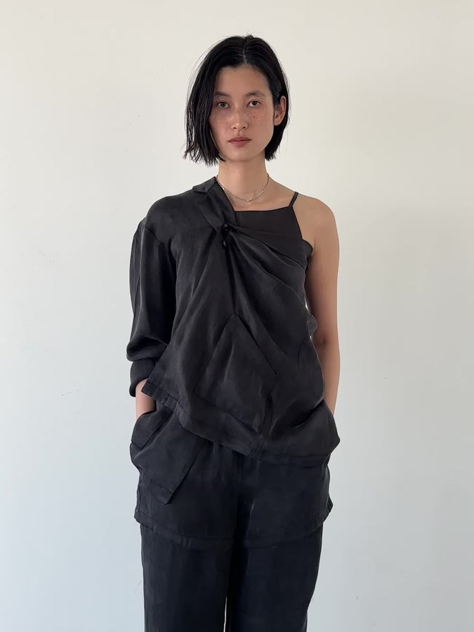 - 2way satin wrap shirt