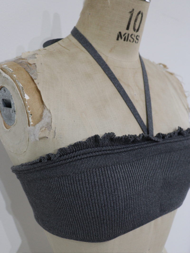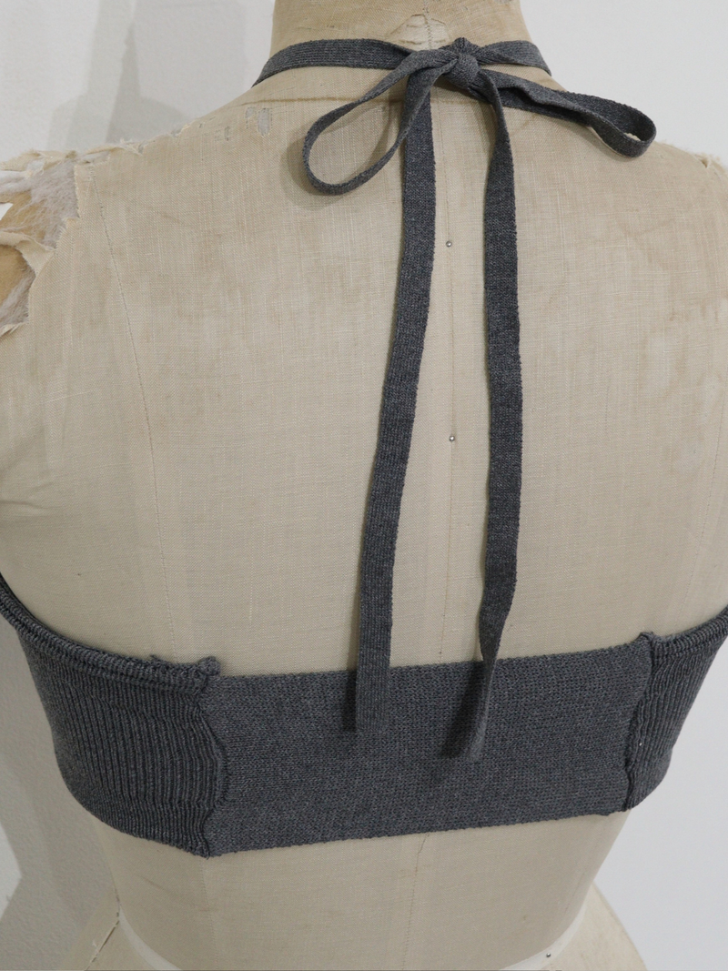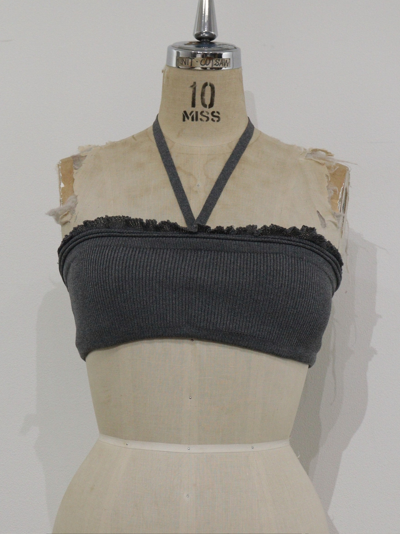 カーディガンはボタンの留め方でシルエットを変化させられる2way仕様に。ブラトップの上部にはギャザーディテールを施し、Vネックのアイテムと合わせたときのポイントになるようにデザインをいれました。ホルターネックの紐は取り外しが可能なのでとして単体使いはもちろんセットで着用することでGEMらしいモードで計算されたレイヤードスタイルが完成する一着。さらりとした着心地でこれからの季節に重宝するアイテムです。