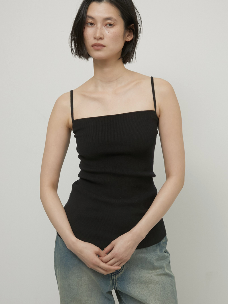 ニットキャミソールの肩紐の長さはボタンにて調整していただけます。